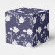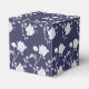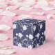 Personalise a unique wedding favour box for guests with this unique Navy Rose Wedding Favour Box. Favour box design features white roses and matching tiled background. Personalise with the groom and bride's names along with the wedding date. Additional wedding stationery available with this design as well.