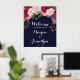 A beautiful way to welcome the guests at your wedding or party. With a navy background and featuring burgundy and blush pink watercolour flowers. Easy to edit the text fields to personalise your names and date to suit you! Lots of matching items in this collection, please visit my shop.