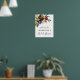 This beautiful welcome sign features deep rust and navy blue flowers. Add your information using the template form. The Customize Further feature can be used to access the advanced editing menu where you can change the font, colors and layout of the text.