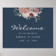 This wedding Welcome poster features painted watercolor pink flowers and greenery with elegant white fonts on a navy blue background. This poster is part of matching wedding suite that includes a wedding Invitation and many other wedding essentials.