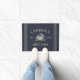 Welcome guests to your seaside abode with this charming rustic doormat that's perfect for your shore house, beach house, or vacation home. Personalised design features your family name in neutral tan lettering, along with your year established and a crab illustration. Rope stripe detailing on a rich navy blue background completes the design.