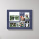 "Navy Rustic Wedding Collage 6 Photograph Script Couple's Name and Date Canvas Print." Your favourite 6 wedding photographs are easy to upload for a customised gift to treasure for a lifetime! Hand painted watercolor navy blue painted wooden background. Ideal for a farm, barn, backyard or farmhouse style wedding style. Art by internationally licensed artist and designer, Audrey Jeanne Roberts, copyright.