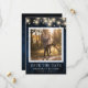 Navy Rustic Wood String Lights Photo Wedding Save The Date