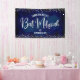 Be proud, rejoice and showcase this milestone of your favourite Bat Mitzvah! Hang up this stunning, modern, stylish, personalised banner to add to her special day. Sparkly, faux silver foil calligraphy script and confetti glitter dots overlay a sophisticated, dramatic navy blue watercolor background. Personalise the custom text with your Bat Mitzvah’s name and date or custom message. Guaranteed to preserve cherished memories of her special occasion! Matching and coordinating invites, address labels, stickers, keepsake binders, and other Bat Mitzvah goodies are also available in this trendy and special collection.