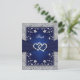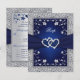 Navy Silver Floral Hearts FAUX Foil Wedding RSVP Card