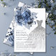 Beautiful navy & silver floral bridal shower invitation with a glamourous wedding dress. Flip our wedding shower invite over to view a coordinating floral back for an extra special touch