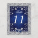 This navy blue and FAUX silver grey foil and floral table number postcard has a pair of PRINTED diamond jewel and FAUX glitter (simulated) joined hearts on it that matches the wedding invitation shown below. ****You MUST change the number 11 to each number that you need, add it to your cart, and then come back and repeat the process with each number that you need. Quantity discounts may apply once you add all the items to your cart. If you have any questions, email niteowlstudio@gmail.com.