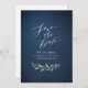 Navy simple calligraphy rustic greenery wedding save the date