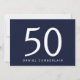 Fifty. 50th Birthday Invitation. Date, place, RSVP included. Navy & White. No gifts. Surprise. Simple.