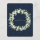 A dark navy flat enclosure card for wedding receptions that are held at a different venue than the wedding ceremony. The card features an elegant stem of hand painted snowberries and eucalyptus on the front and a wreath on the back of the card. All text is fully editable and the scattered dots on the front and back can be deleted before ordering if you would prefer. This card is available with alternative botanical designs, in a landscape format, and in different colours. Please view the Collection in my store to see all options and coordinating items.