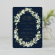A dark navy reception only winter wedding invitation, featuring hand painted snowberries and stems of eucalyptus arranged into a beautiful botanical frame. The text and scattered dots on the front of the card are foil pressed. All text is fully editable, and the scattered dots on the front and back can be deleted before ordering if you would prefer. Please view this Collection in my store for invitations with alternative wording options, different colours and for coordinating items.
