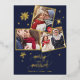 Navy Snowflake Foil 3 Photo Engagement Christmas Holiday Postcard