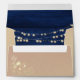 Complete your winter wedding suite with this rustic navy and kraft-style envelope, featuring romantic gold floral accents and glowing string lights on the interior liner. Designed to coordinate perfectly with the matching invitation suite, it adds a charming and cohesive finish to your mailing presentation.