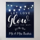 Navy String of lights Let love glow wedding party sign