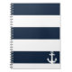 Navy Stripe Notebook - Anchor - White