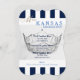 Created in a stunning striped style for a fun fresh setting for your pageant or luncheon event. Shown in classic Navy Blue and White stripes on front and back is white on fine quality paper, this program/menu card has a large silver coloured four-point crown in the centre. Text written over top of crown. Fancy bracketed edging. We've created the template for you, simply change the information to your own at the right side of your screen in the selection menu. Customise further if you desire by changing the paper selection,text or text colours, background colours, text styles or upload your own image. Lovely choice for receptions, retirement parties, pageant parties, balls, luncheons, events, weddings or veterans events.