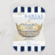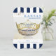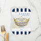 Created in a stunning striped style for a fun fresh setting for your pageant or luncheon event. Shown in classic Navy Blue and White stripes on front and back is white on fine quality paper, this program/menu card has a large Gold coloured four-point crown in the centre. Text written over top of crown. Fancy bracketed edging. We've created the template for you, simply change the information to your own at the right side of your screen in the selection menu. Customise further if you desire by changing the paper selection,text or text colours, background colours, text styles or upload your own image. Lovely choice for receptions, retirement parties, pageant parties, balls, luncheons, events, weddings or veterans events.