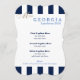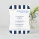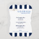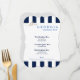 Created in a stunning striped style for a fun fresh setting for your pageant or luncheon event. Shown in classic Navy Blue and White stripes on front and back is white on fine quality paper. Text written in centre area. Fancy bracketed edging. We've created the template for you, simply change the information to your own at the right side of your screen in the selection menu. Customise further if you desire by changing the paper selection,text or text colours, background colours, text styles or upload your own image. Lovely choice for receptions, retirement parties, pageant parties, balls, luncheons, events, weddings or veterans events.