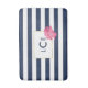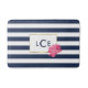 Navy Stripe & Pink Peony Monogram Bath Mat