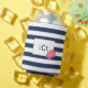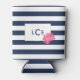 Navy Stripe & Pink Peony Monogram Can Cooler