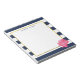 This notepad features a bold navy blue and white stripe background, FAUX gold border, and a pretty pink peony in soft watercolors. Coordinates with our Navy Stripe & Pink Peony office supplies, paper products, and accessories. Customise with a monogram, name or text of your choice!