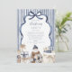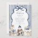 A sophisticated navy-striped Christmas invitation featuring watercolor Santa, elegant gift boxes, and soft neutral accents. The hand-painted bow frame and minimalist palette evoke a refined winter charm — perfect for formal holiday gatherings or cosy festive parties alike.