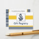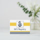 navy blue and white stripes with yellow border and white dotted border featuring an anchor, Mod nautical wedding Gift registry cards. Matching products also available.