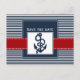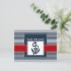 navy blue and white stripes with red border and white dotted border featuring an anchor, Mod nautical wedding save the date. Matching products also available.