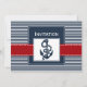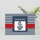 navy blue and white stripes with red border and white dotted border featuring an anchor, Mod nautical wedding invites. Matching products also available.