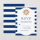 Navy Stripes Watercolor Steering Wheel Nautical RSVP Card
