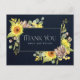 NAVY SUNFLOWER EUCALYPTUS FLORAL WEDDING THANK YOU ANNOUNCEMENT POSTCARD