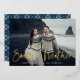 Festive holiday card featuring your horizontal photo with "Sweater Weather" displayed in a gold foil script overlay. Personalise the front of the foil holiday card with a custom greeting and your name. The back of the card features a navy and white nordic snowflake sweater pattern.