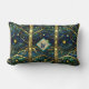 Navy Teal and Gold Moonlight Forest with Monogram Lumbar Cushion