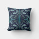 Navy Teal Grey Floral Symmetrical Swirling Mosaic Cushion