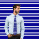 Navy Tie With Thin Horizontal White Stripes