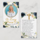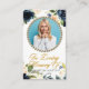 Navy Watercolor Flowers Photo Funeral Prayer Card