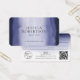 Modern watercolor business gift certificate card design featuring gradient navy blue watercolor background, elegant typography and space for your logo and scannable QR code. Create elegant gift cards for your hair salon, beauty spa, nails studio or any other business using this professional gift voucher template with QR code.