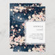 Navy Waves Sakura Blossom Modern Wedding Invitation