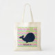If you love whales you'll love this cute and cheery whale design tote bag featuring a navy blue whale with green chevron stripe water spout on a chevron stripe background of aqua, pink, green, and white with an area you can personalise with a name!