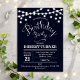 Navy Blue White Birthday Party Invitation. Elegant design in navy and white. Perfect for a rustic style celebration. Features string fairy lights and stylish script font. Personalise with your own details. Please message us if you need further customisation.