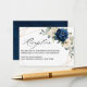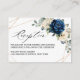 Dark navy blue floral wedding reception card featuring elegant bouquet of navy blue, royal blue , white , gold, champagne ivory, blush colour rose , hydrangea, ranunculus, peony, flower buds and sage green eucalyptus leaves and elegant watercolor with round glitter geometric neutral frame. Please contact me for any help in customisation or if you need any other product with this design.