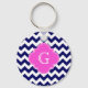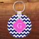 Navy White Chevron Hot Pink Quatrefoil Monogram Key Ring