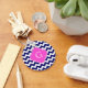 A stylish, modern, chic chevron zig-zag pattern in navy blue and white. Customize the hot pink quatrefoil label with your monogram, name or other text. (Click on "Customize it" to change the font, adjust font sizes, font colors, etc.)