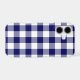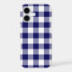 The navy and white gingham pattern features dark blue, white, and light blue squares in a bold, buffalo plaid.