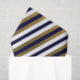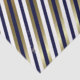 Holiday tissue paper with a diagonal stripe design of gold, white, and navy blue.