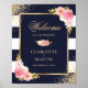 Navy White Gold Pink Floral Wedding Welcome Sign