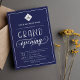 Grand opening invitation in an elegant navy blue and white typography design for your business, perhaps a store, a restaurant, or a beauty salon. Add your own logo too!