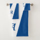Trendy abstract white and navy blue stylish geometric colour block bath towel set personalised with your monogram and name.