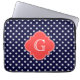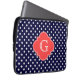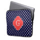 Navy White Polka Dot Coral Quatrefoil Monogram Laptop Sleeve