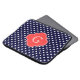 Navy Blue and White Polka Dot Pattern, Coral Red Quatrefoil Label Monogram
